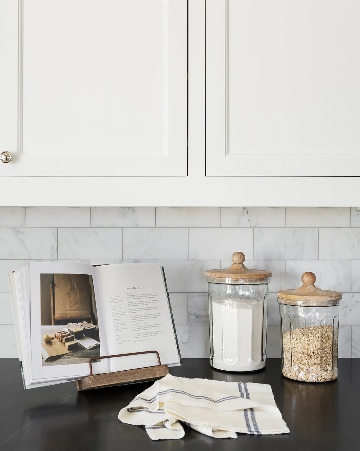Made of rustic wood, with a metal support, this Aged Cookbook Stand makes reading recipes easy. When you’re not cooking, keep it out and flip to a pretty page––it’s one of the most natural ways to add art to the kitchen counter.
