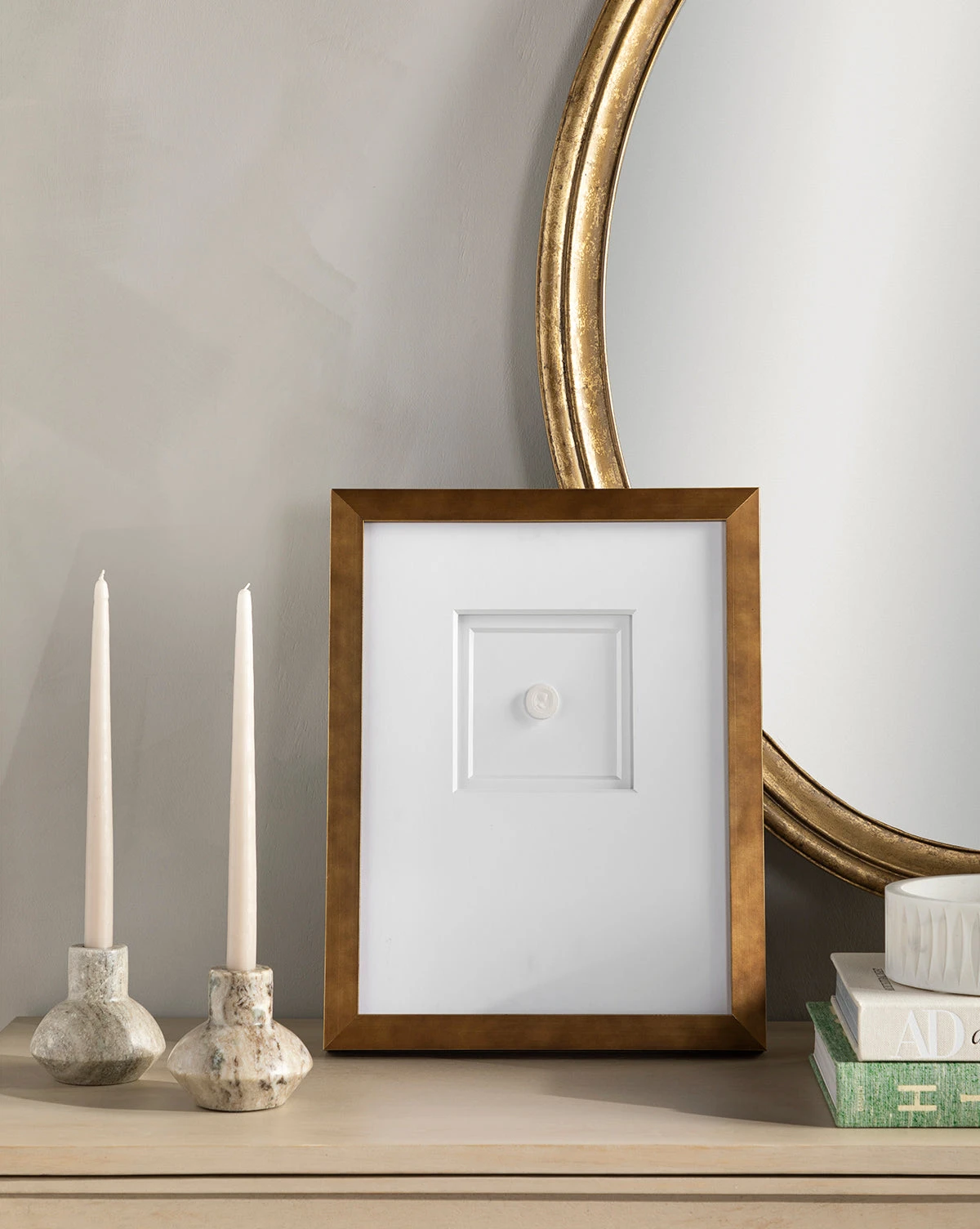 Function follows form in the Marble Shaped Taper Holder. Its softly tapered shape is crafted from marble, giving visual weight to this simple yet elegant design. Beige marbling swirls through the piece to create movement across its softly rounded surface, making it a beautiful complement to the tall, slender candles it holds.