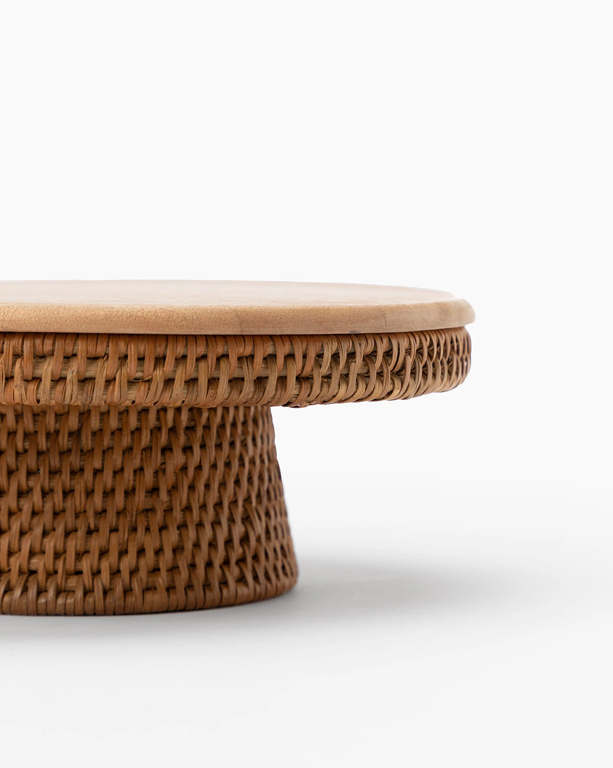 With a red mahogany wood top, the Cooper Pedestal is a refined lesson in a natural palette. The metal structural base is covered in woven rattan, intricately woven to create a distinct texture. With its warm tones and neatly tiered shape, this stand suits any table or countertop decor.