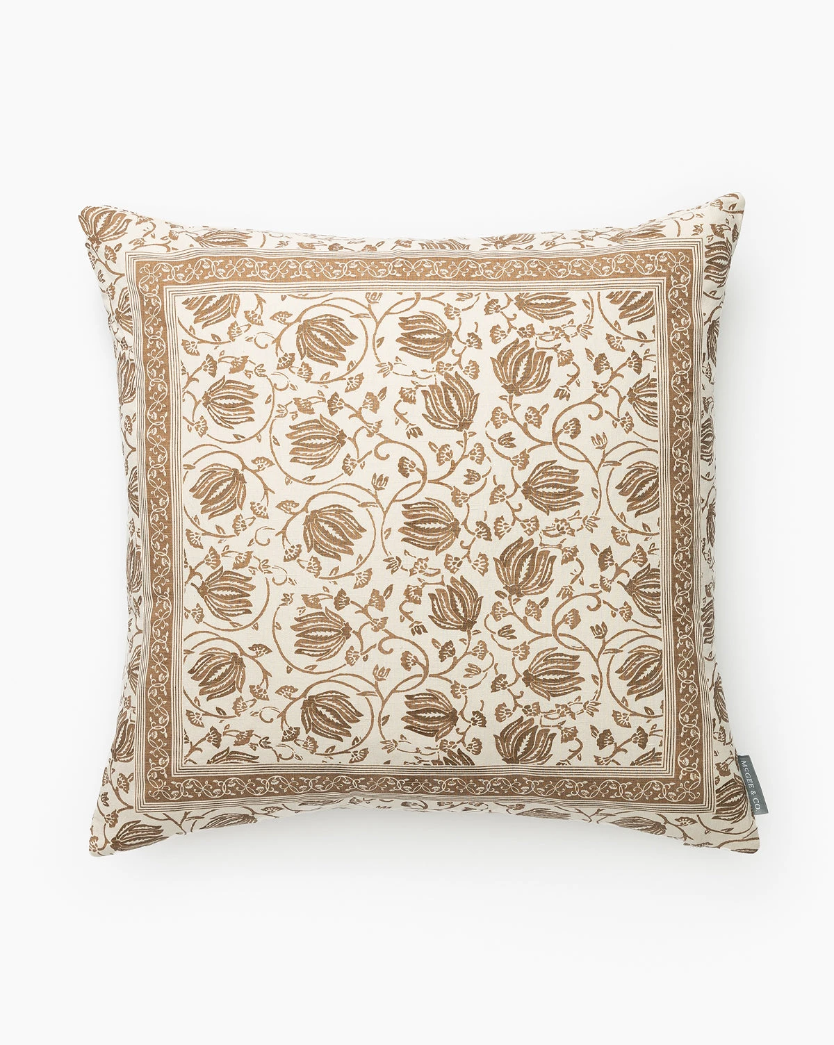 With neutral browns and flowers, the muted palette of the Jolie Floral Pillow Cover brings softness to your pillow vignettes. Its floral pattern is both intricate and whimsical and is framed with a classic border full of vine-like details that adds character to your display.