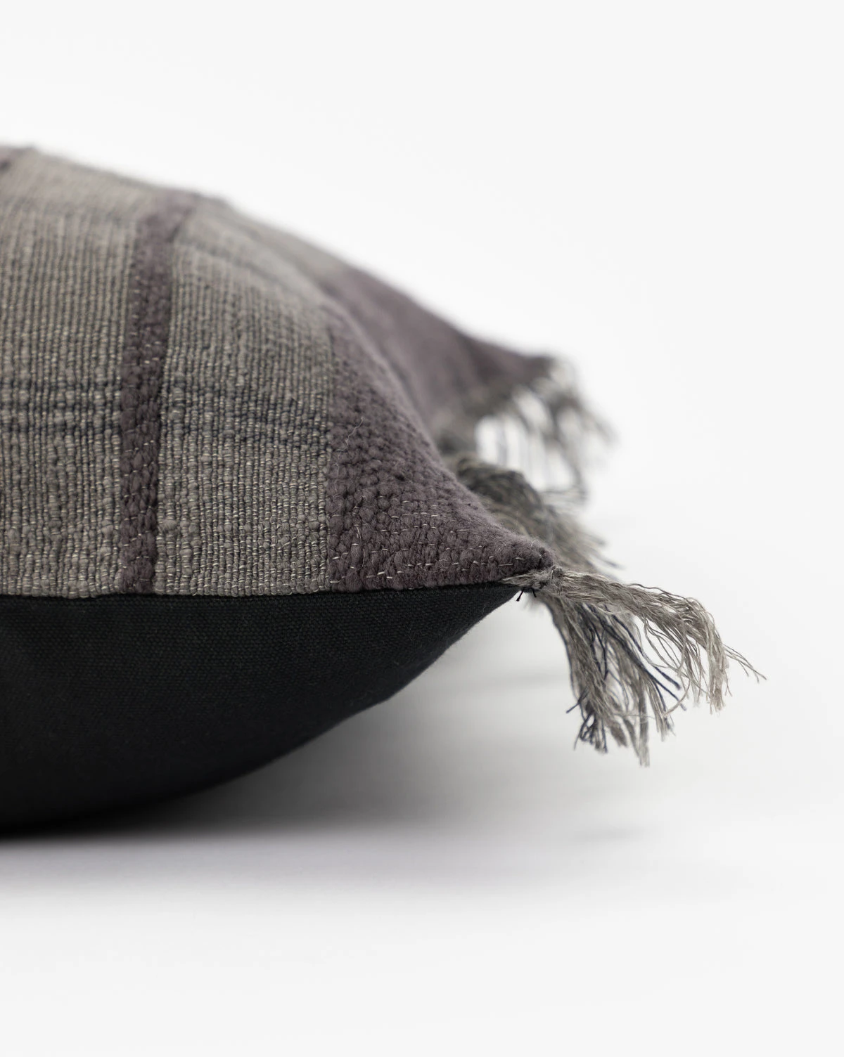 With a thick, woven feel and a subtle striped motif, the Jonan Pillow Cover lends its rich dark purple hue to your pillow vignettes. A short fringe on one of its edges brings an added textural interest and a whimsical flair.