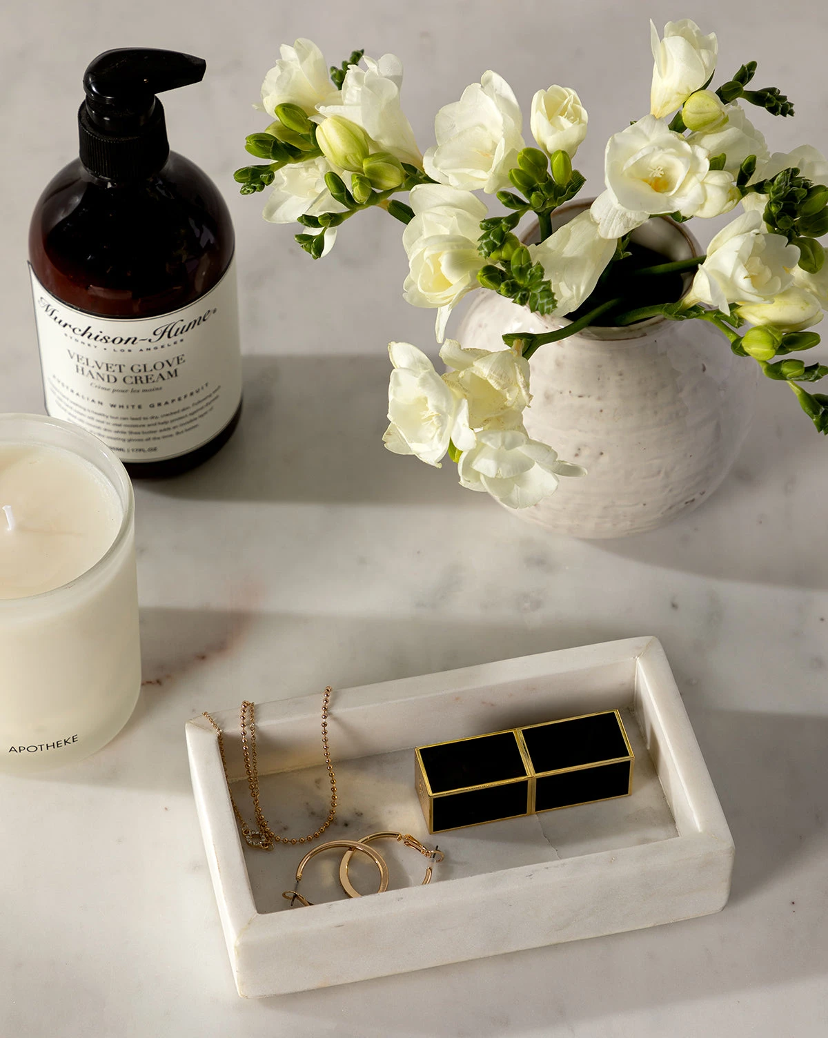 Take your bathroom style to another level with this Marbled Tray.ย Crafted completely out of marble with luxurious veining, itโs the most sophisticated way to corral your soap and lotion duo.