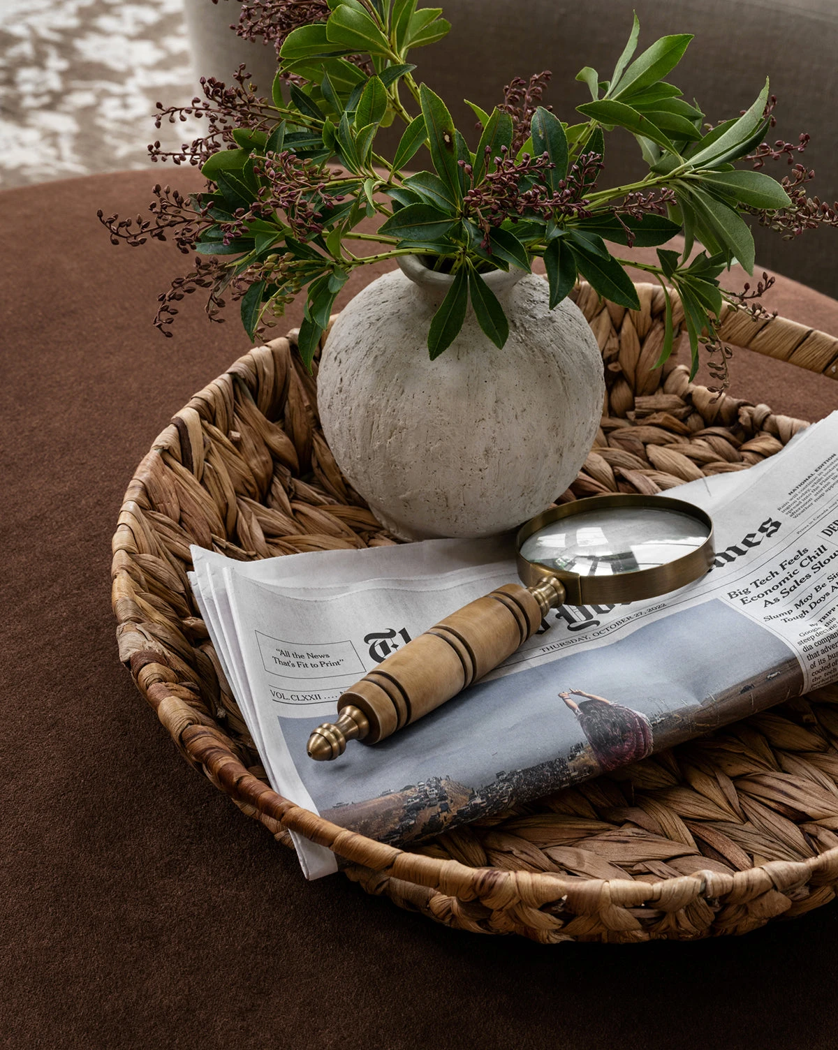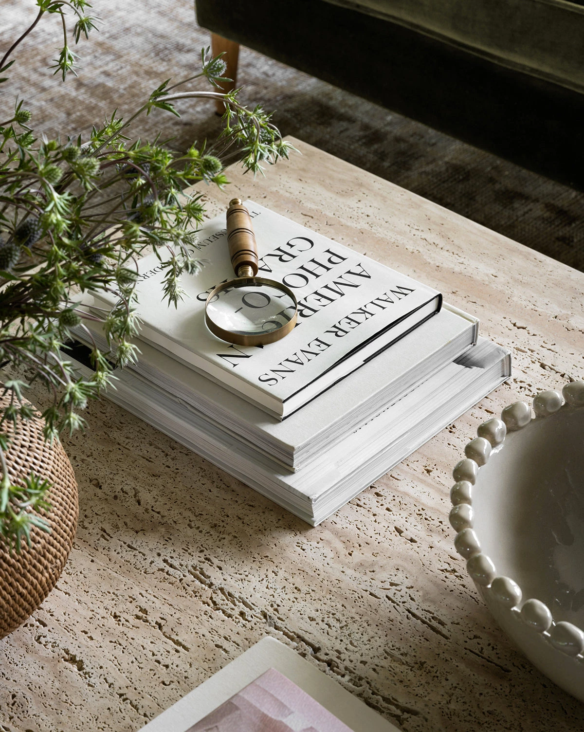 With brass details and a carved handle, the Mortimer Magnifying Glass is a timeless accessory with a vintage feel. Placed on a desk or coffee table, this magnifying glass adds intrigue with its thoughtfully chosen materials and beautiful convex lens.
