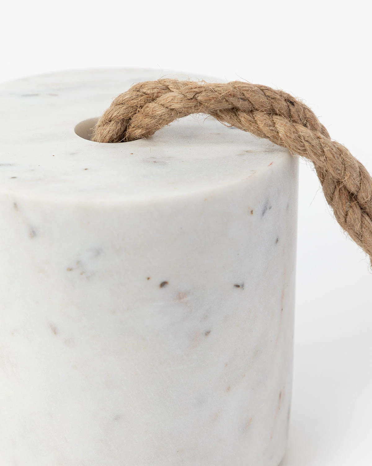 Made entirely from white marble, the Orvin Marble Door Stopper’s weighty material makes it an extraordinarily practical item. Place the cylindrical door stopper by an open door by using its woven jute handle, bringing organic detail to even the overlooked corners of a room.