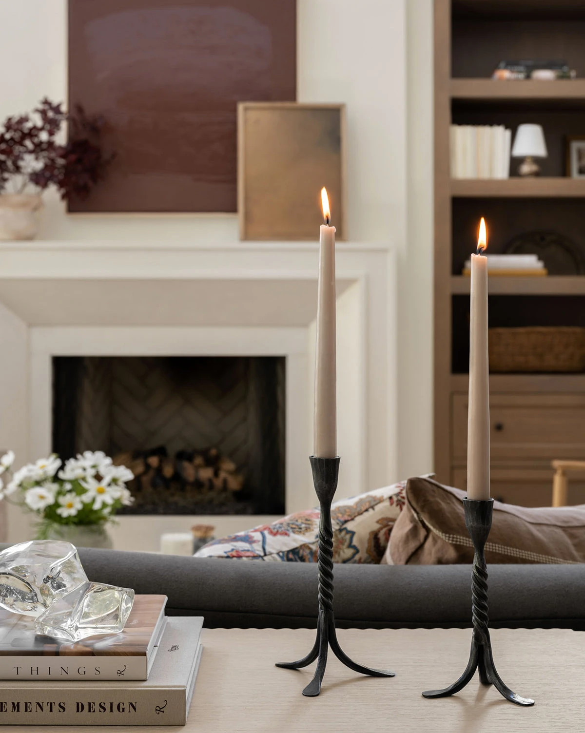 Crafted from iron with a sculpturally inspired design, the Rosario Taper Holder brings a classic feel and a bold personality to your tabletop or console vignette. Its intentional details bring interest to your taper candles wherever they are styled.
