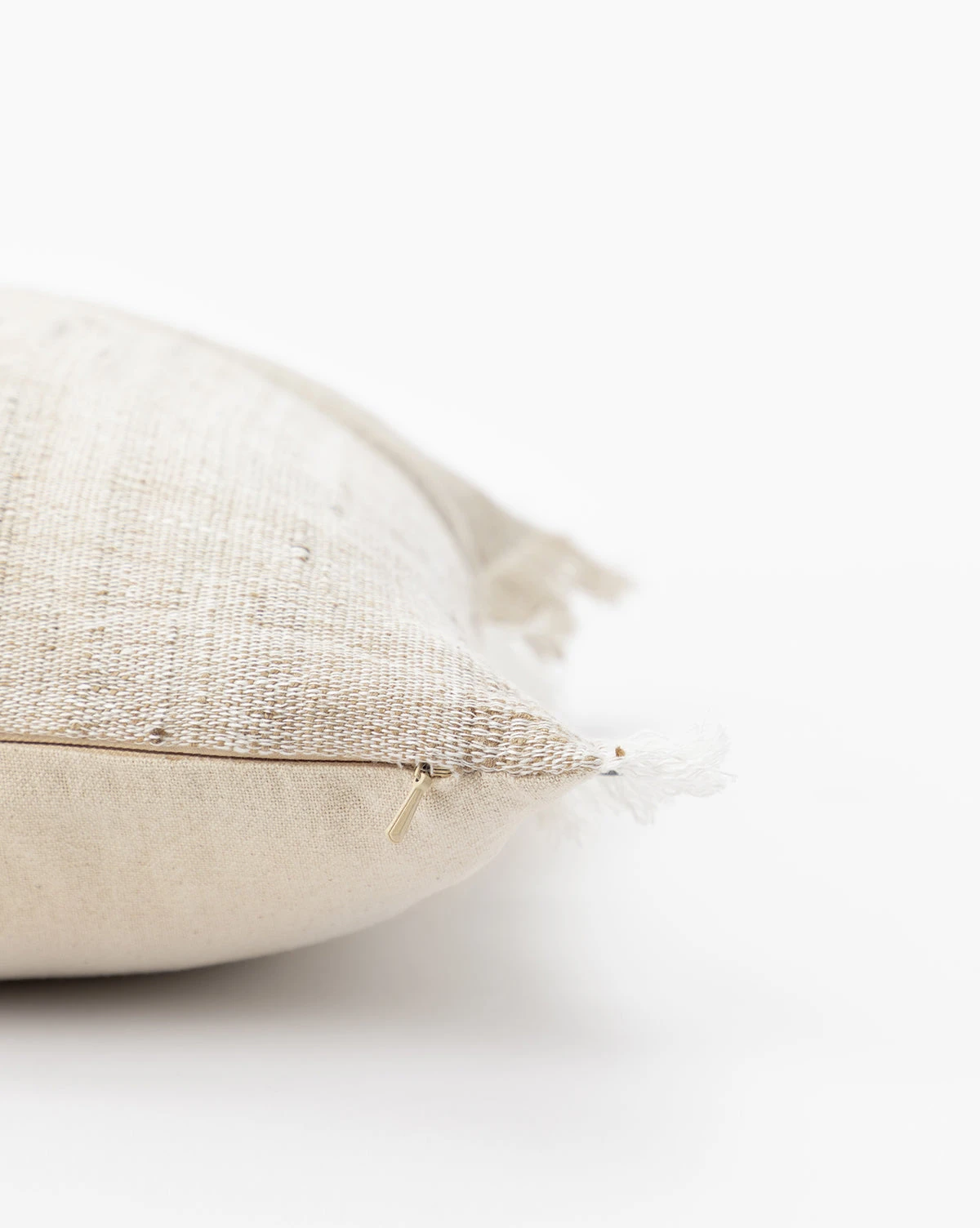 With a neutral palette, the Suzie Pillow Cover is highly textural in its pattern. The beautiful silk and linen material has natural detail in the fabric, complementing the tan block stripe that is offset in the pillow cover pattern. Complete with fringed edges, this lumbar pillow adds simple dimension to pillow vignettes.