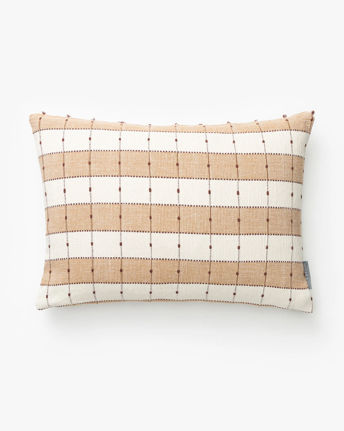 Textural and refined, Vintage Tan Check Pillow Cover No. 7 features an ivory and tan checkerboard stripe with dark brown lines and dots for an added layer of detail. As part of our Vintage Collection, this vintage pillow cover was hand-selected by our team for the unique character, heirloom quality, and beauty it will add to the home.Â